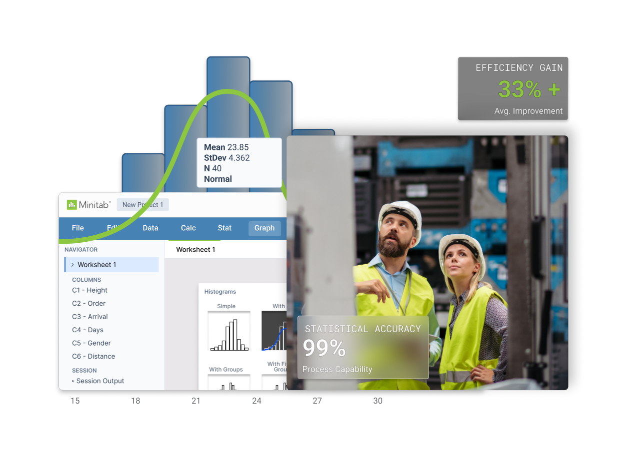 Rejoignez les milliers d’ingénieurs qui font confiance à Minitab pour les aider à résoudre des problèmes, à optimiser les processus et à obtenir des résultats mesurables.
